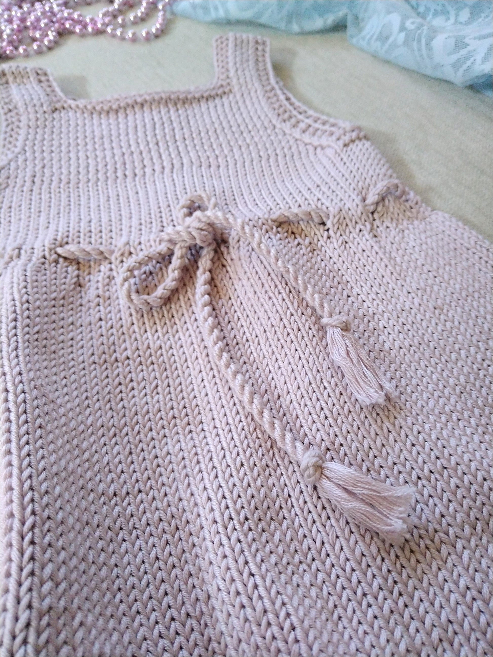 Stickad i 100% bomull, denna underbara klänning är skön mot huden och har en vacker lyster och textur.