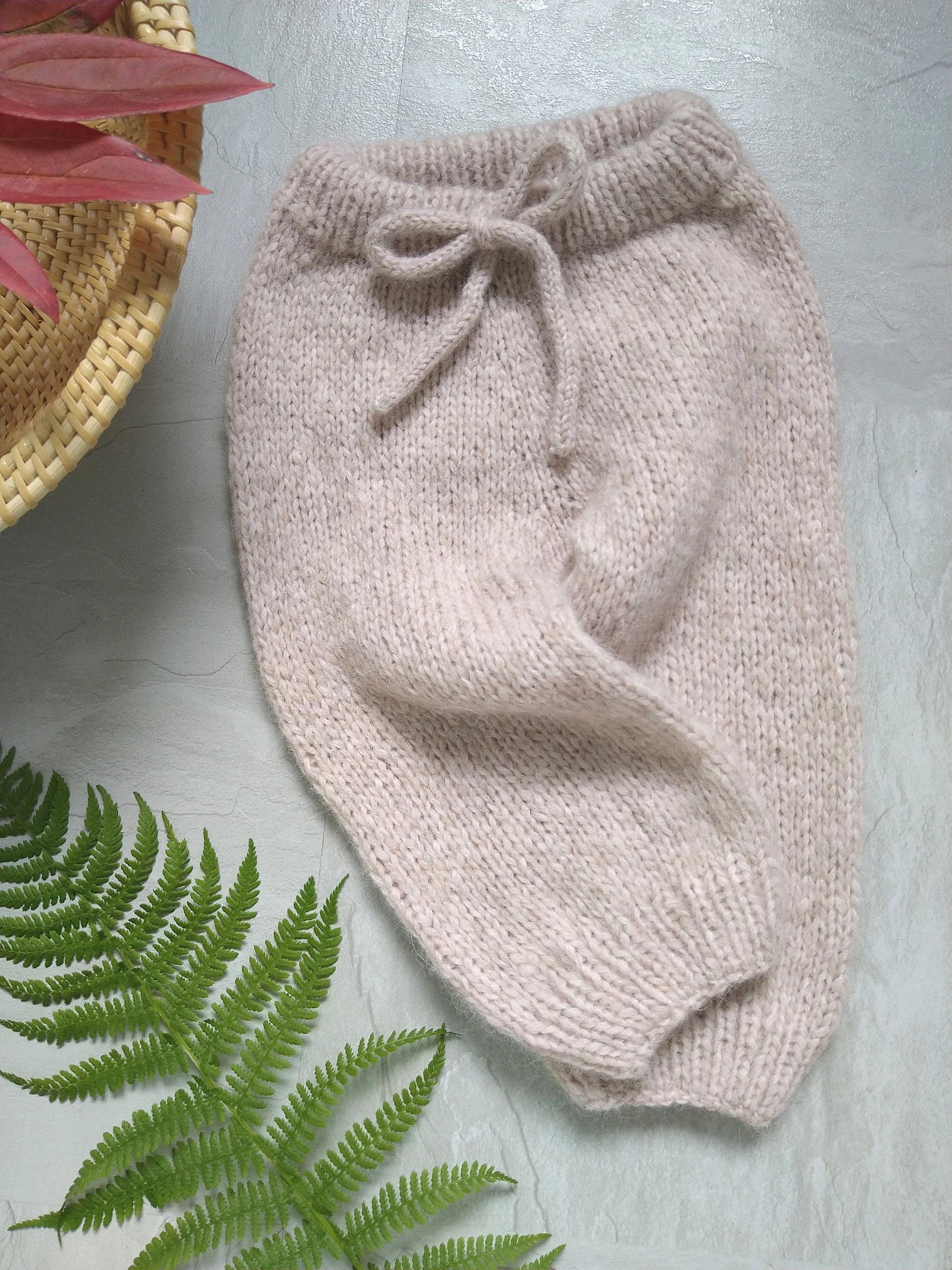 Ett par byxor som är stickade i baby alpaca och merino ull, mjuka och luftiga samtidigt som de är varma.