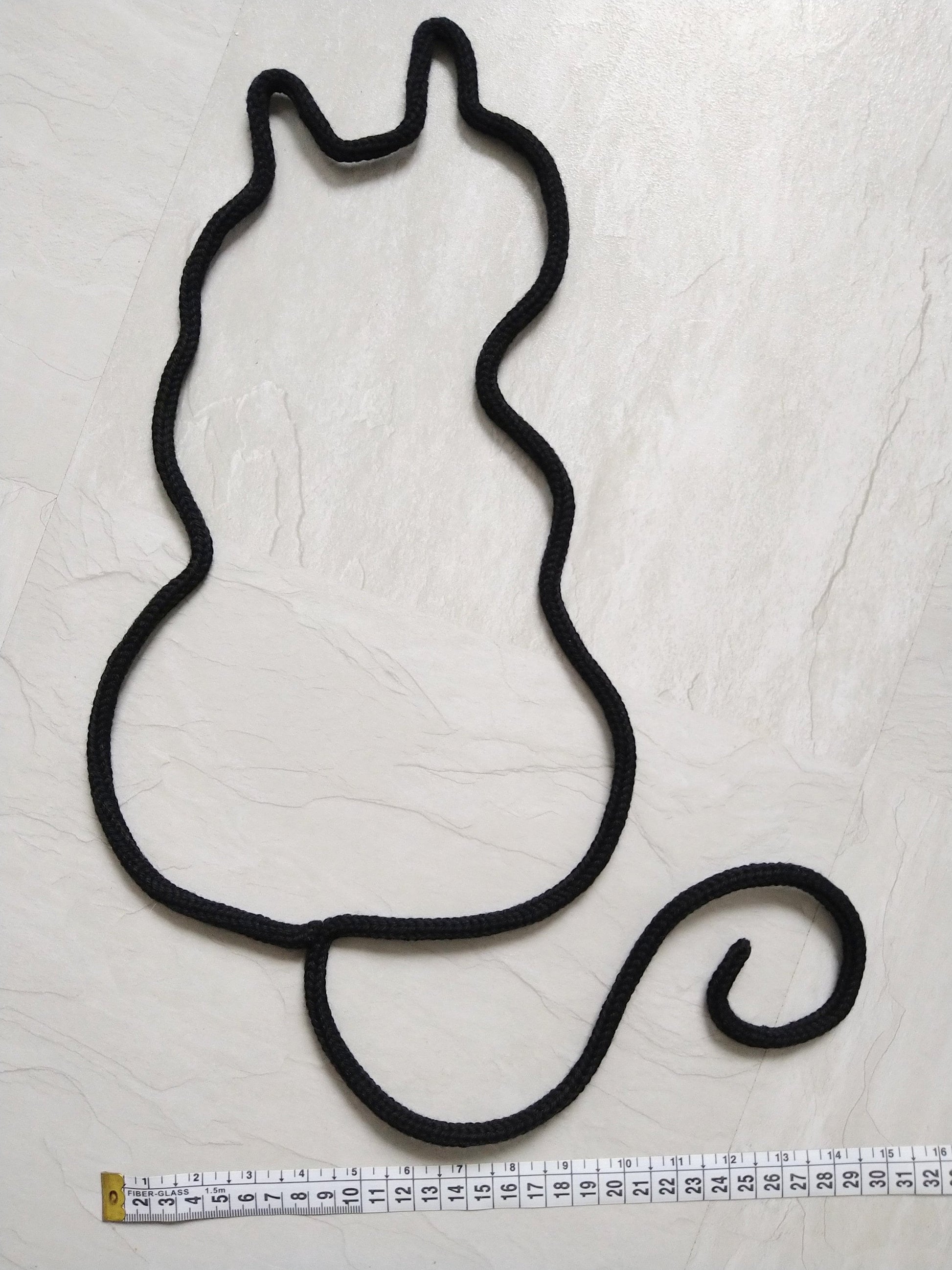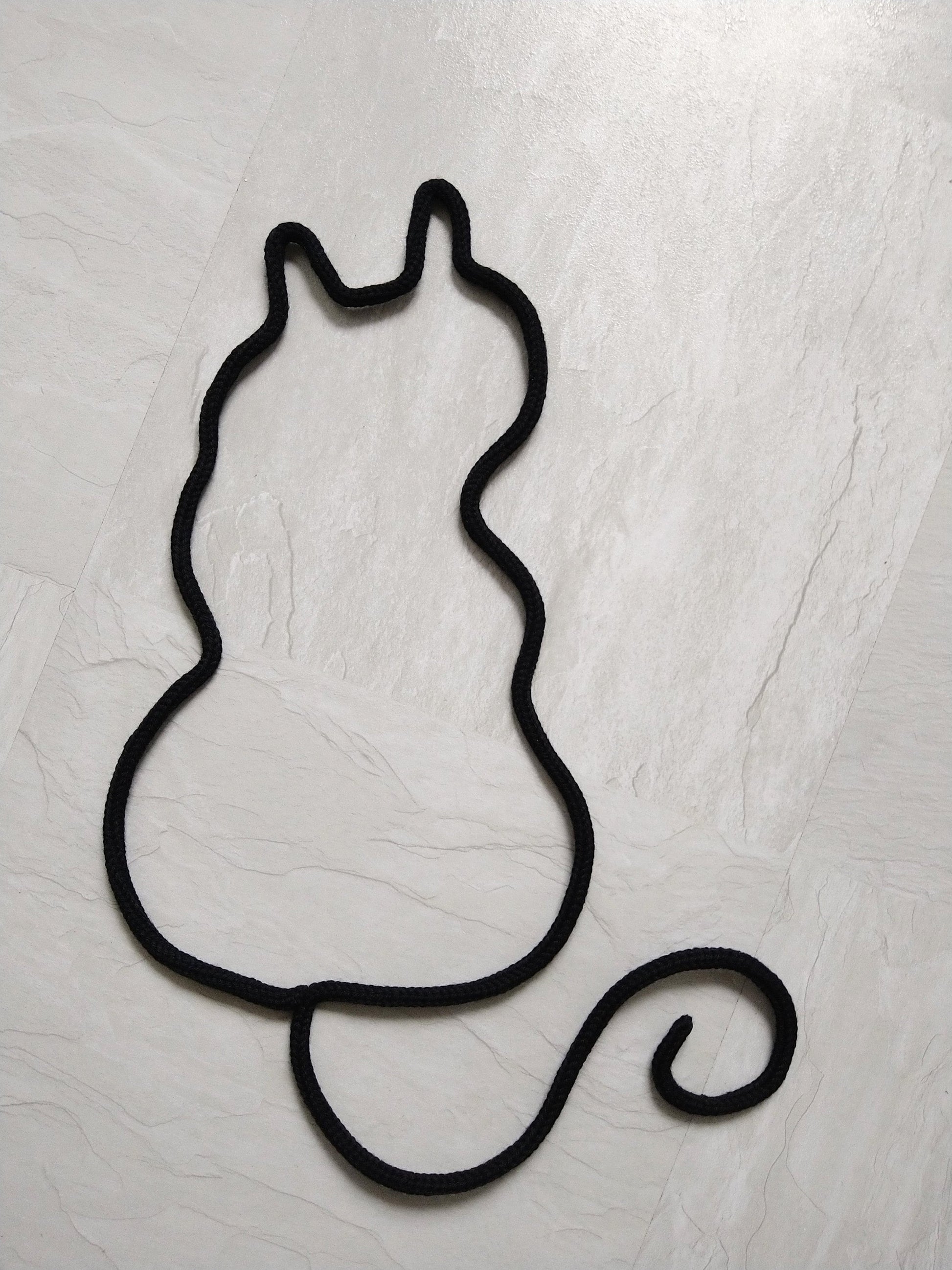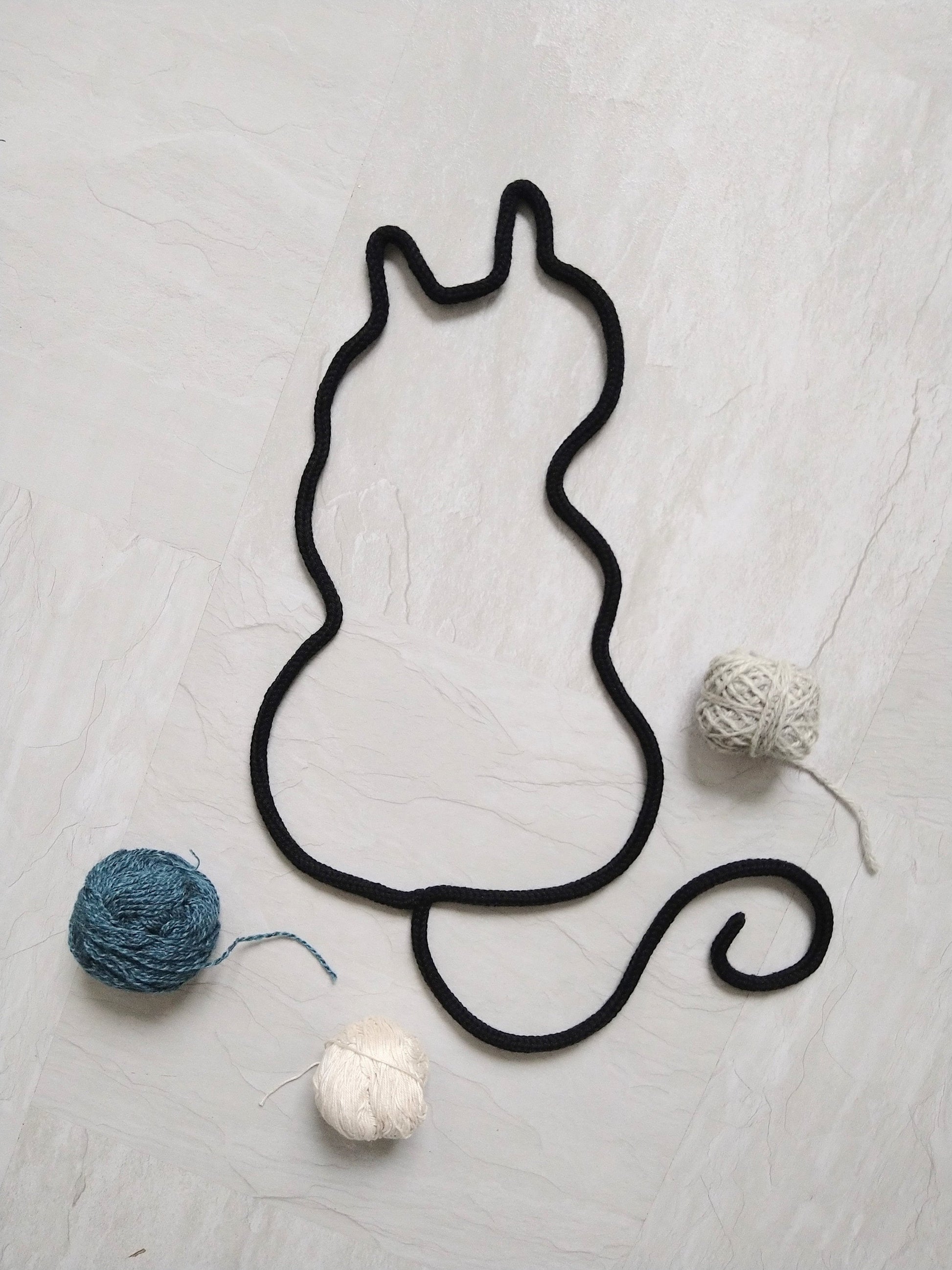 En väggdekoration Katt gjord av 3mm ståltråd och täkt med garn (merino ull).