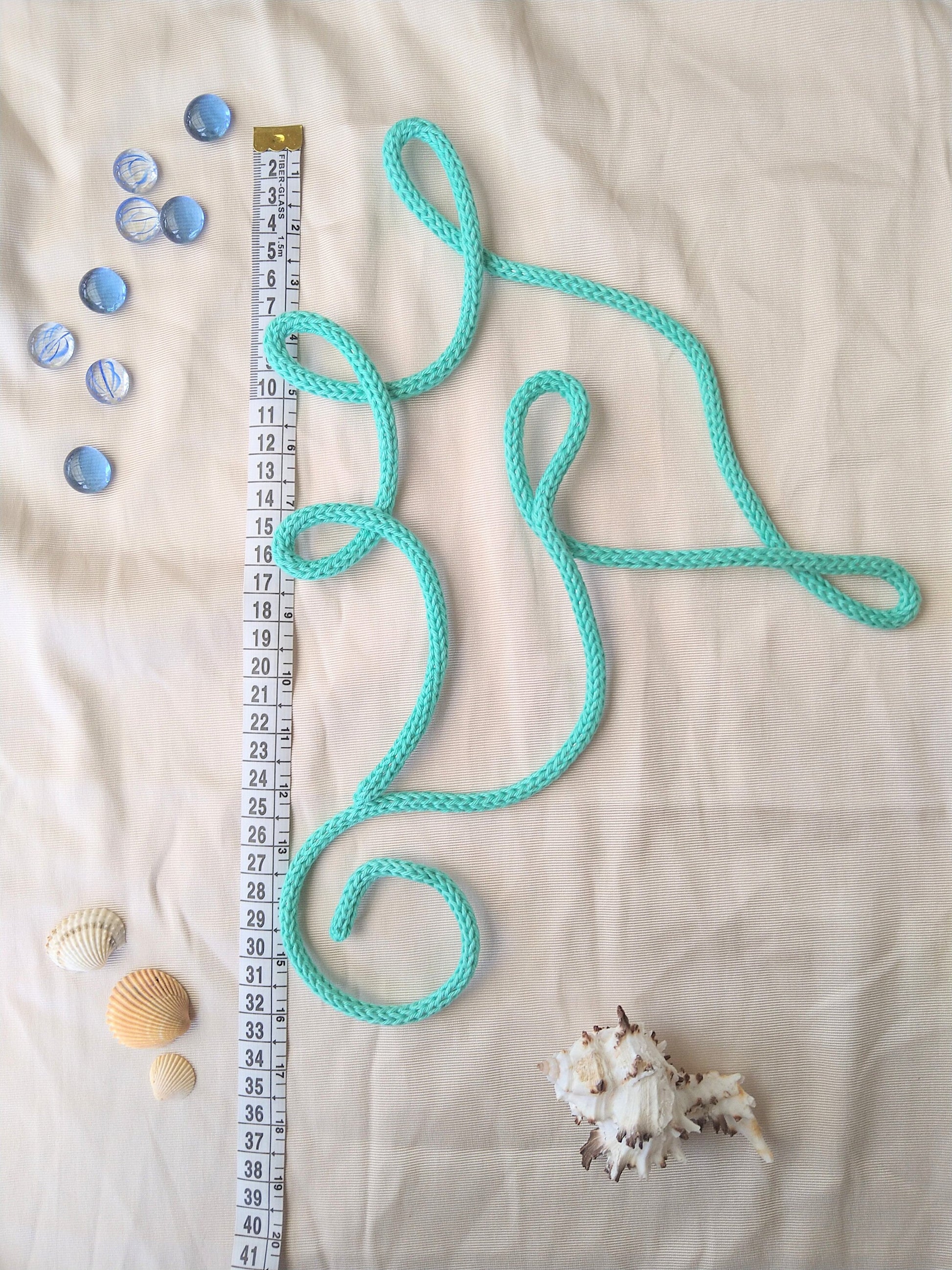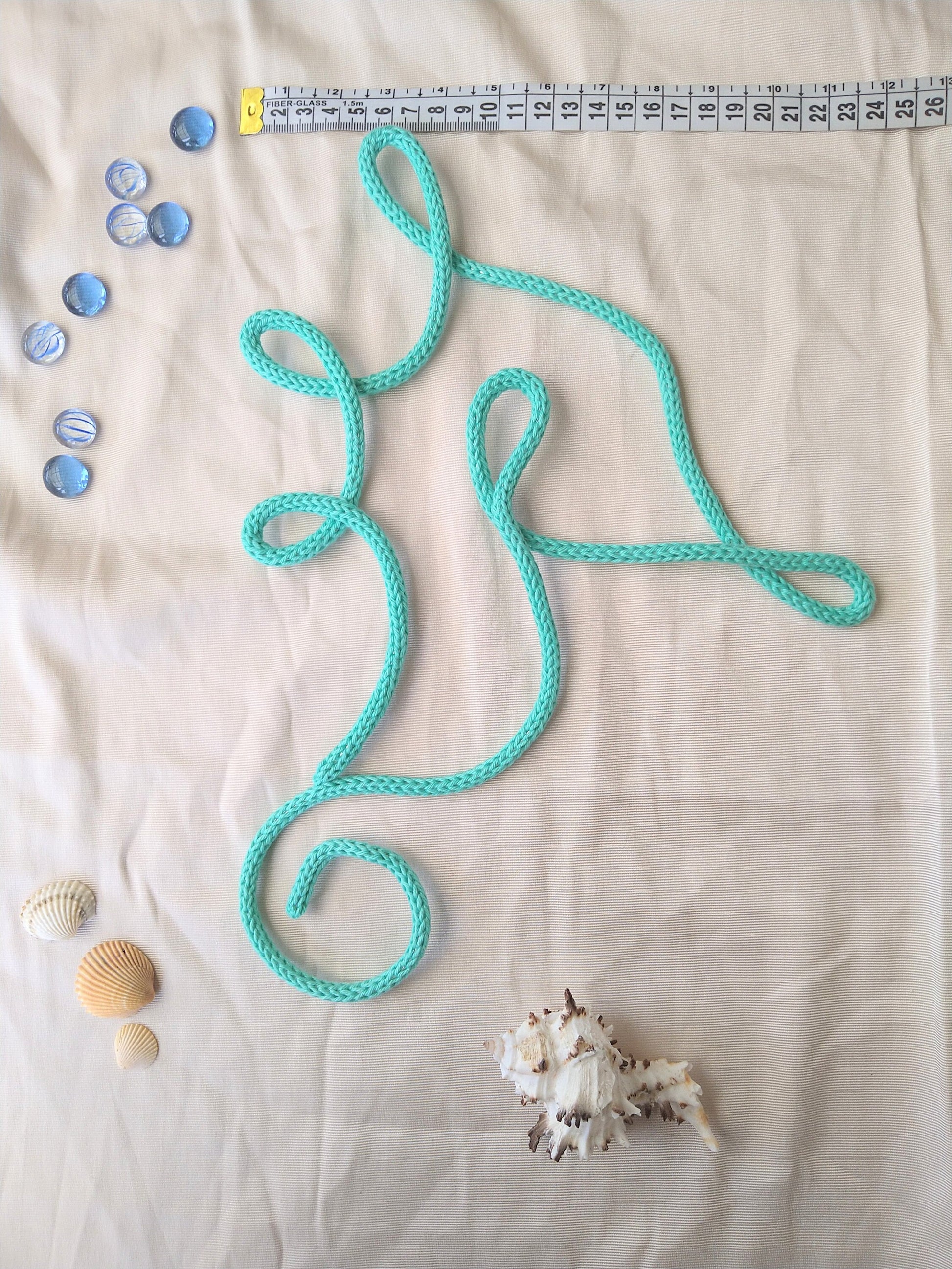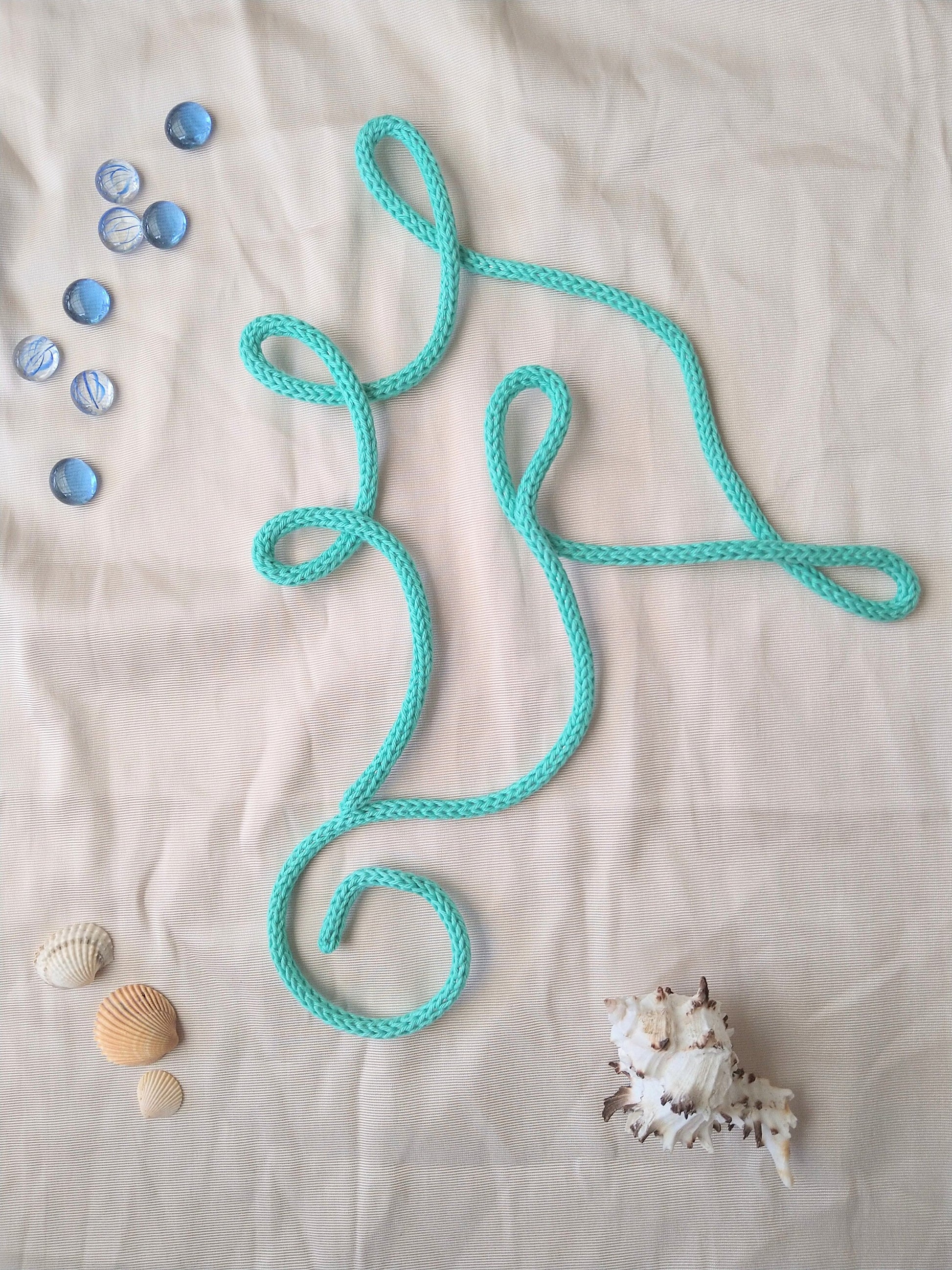 En väggdekoration Sjöhäst gjord av 3mm ståltråd och täkt med garn (bomull).